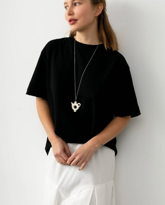 The collection includes porcelain necklaces, jewerly made of natural pearls and ceramic beads.