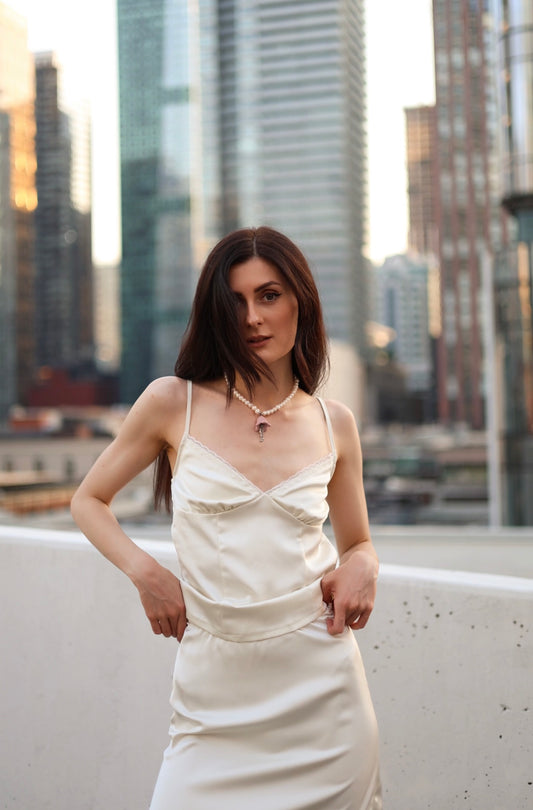 The collection includes porcelain necklaces, jewerly made of natural pearls and ceramic beads.