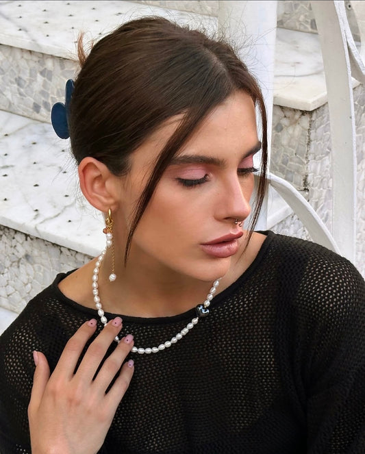 The collection includes porcelain necklaces, jewerly made of natural pearls and ceramic beads.
