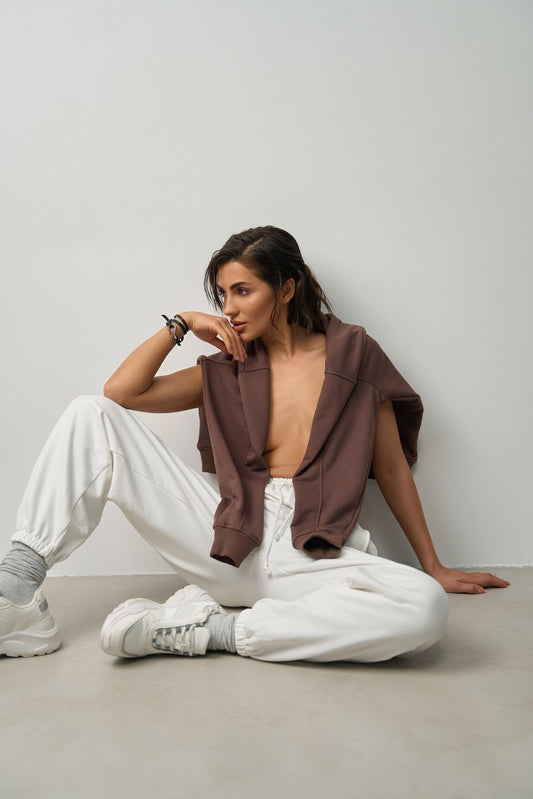 Cotton Wide Jogger Pants White Vibe