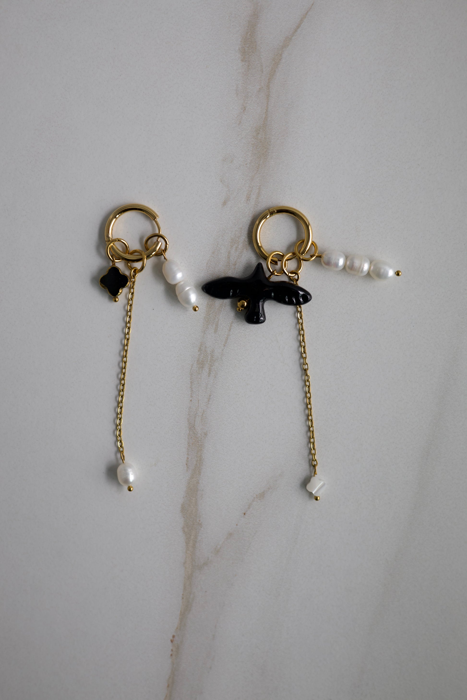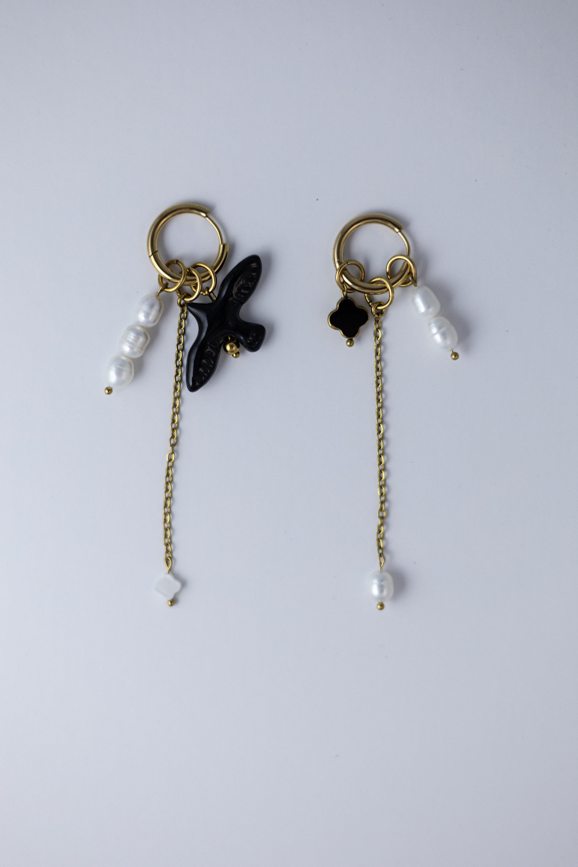 Materials: freshwater pearls, handcrafted ceramic beads, stainless steel fittings with rhodium plating.