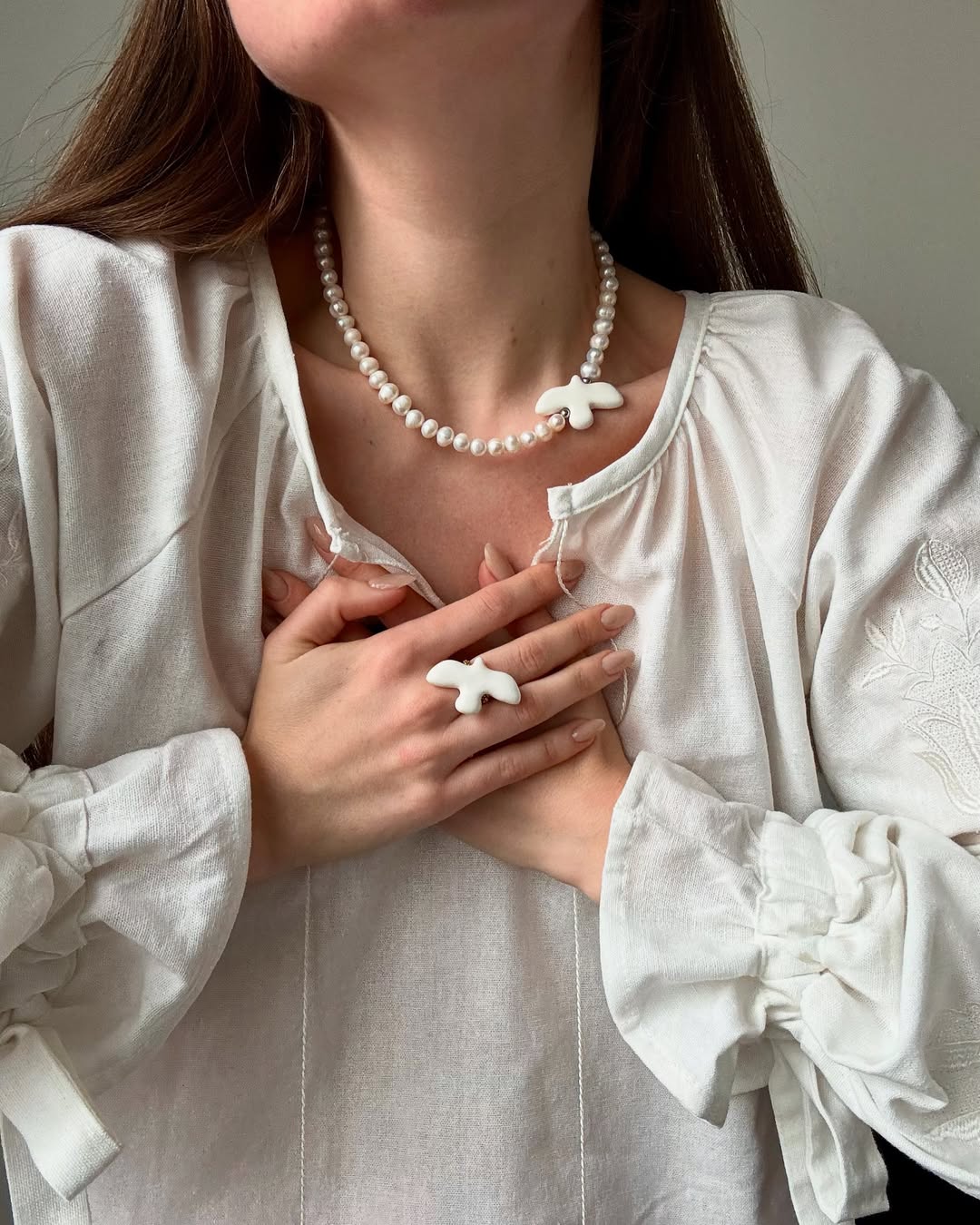 Elegant ring with ceramic bird
