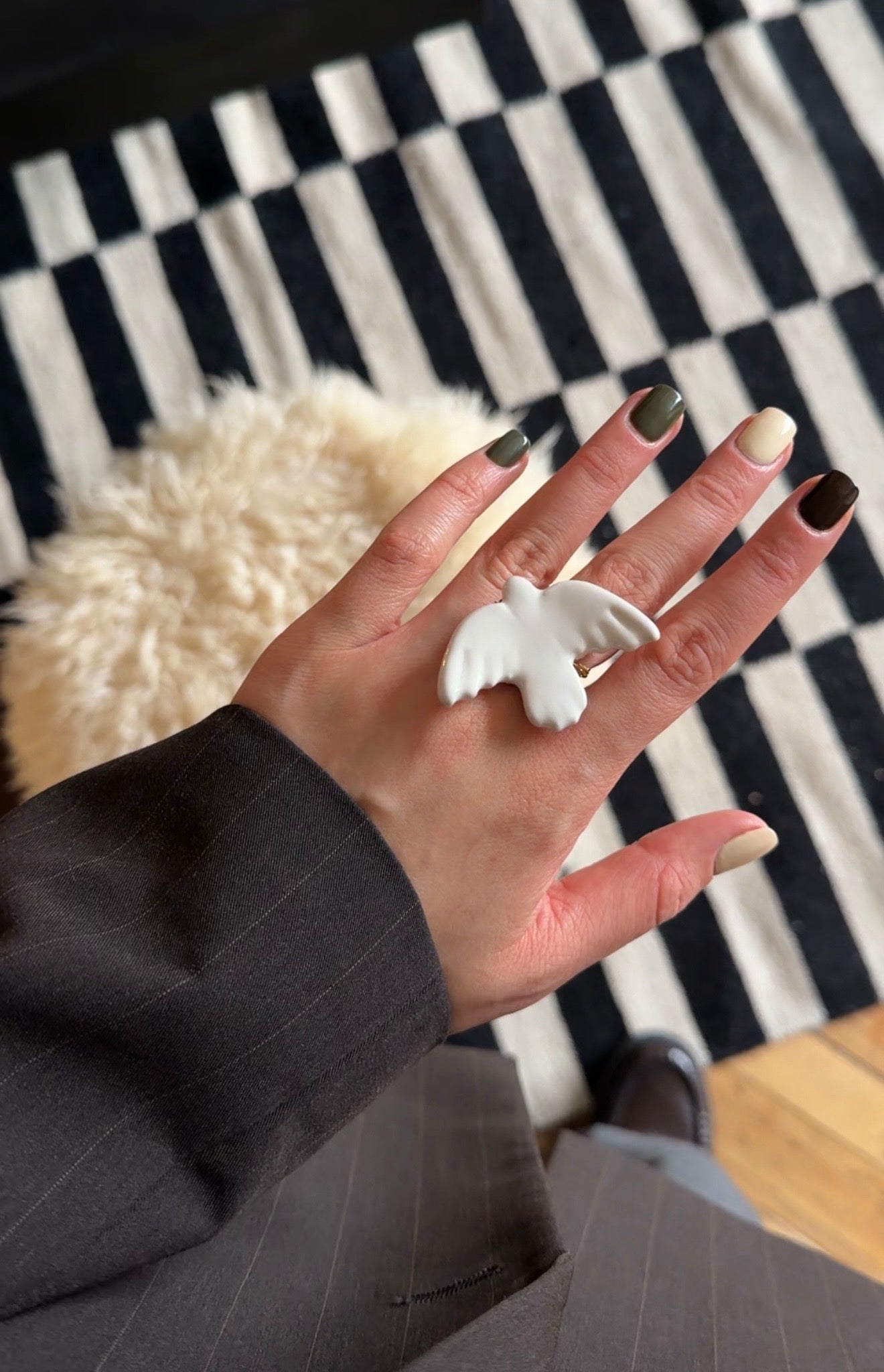 Elegant ring with ceramic bird